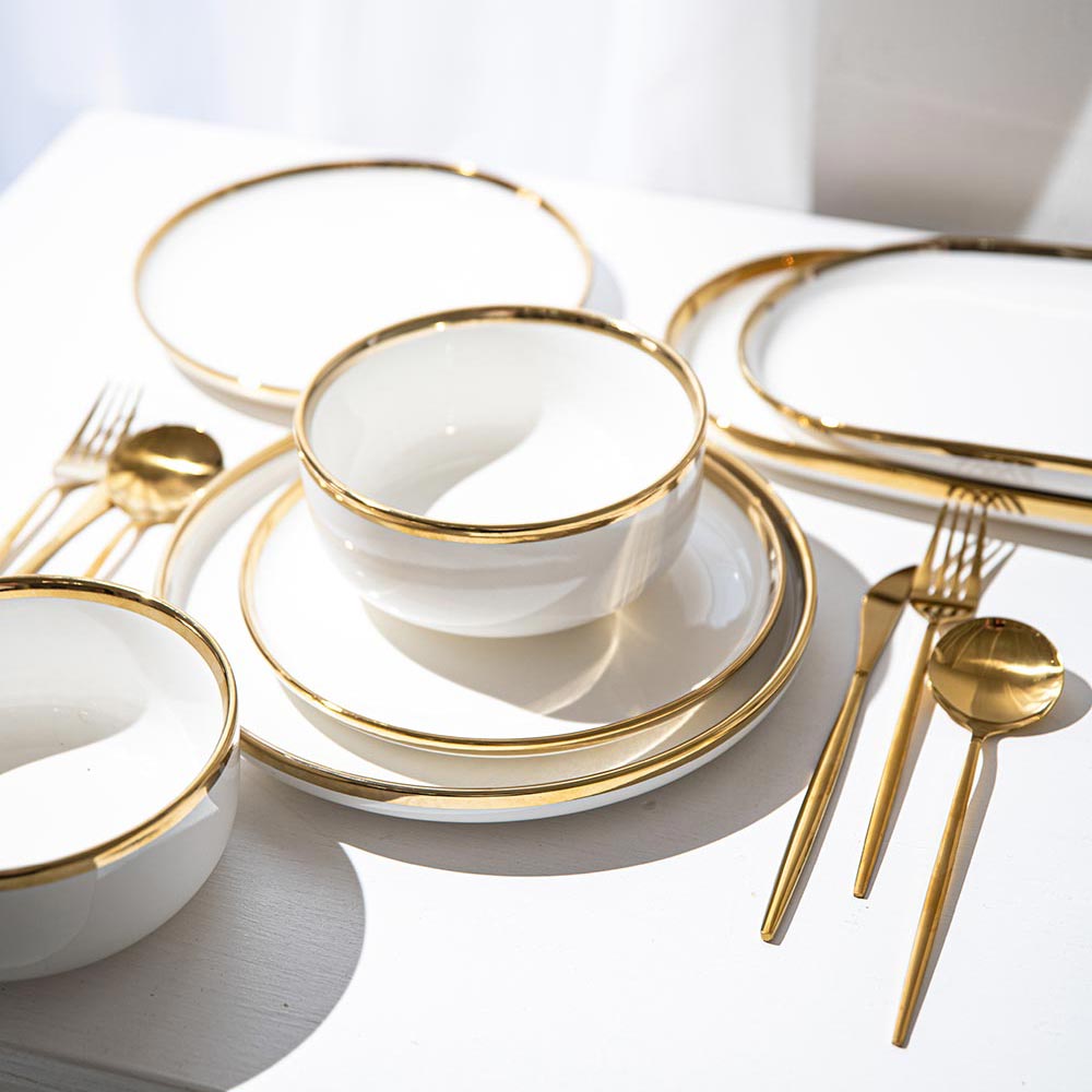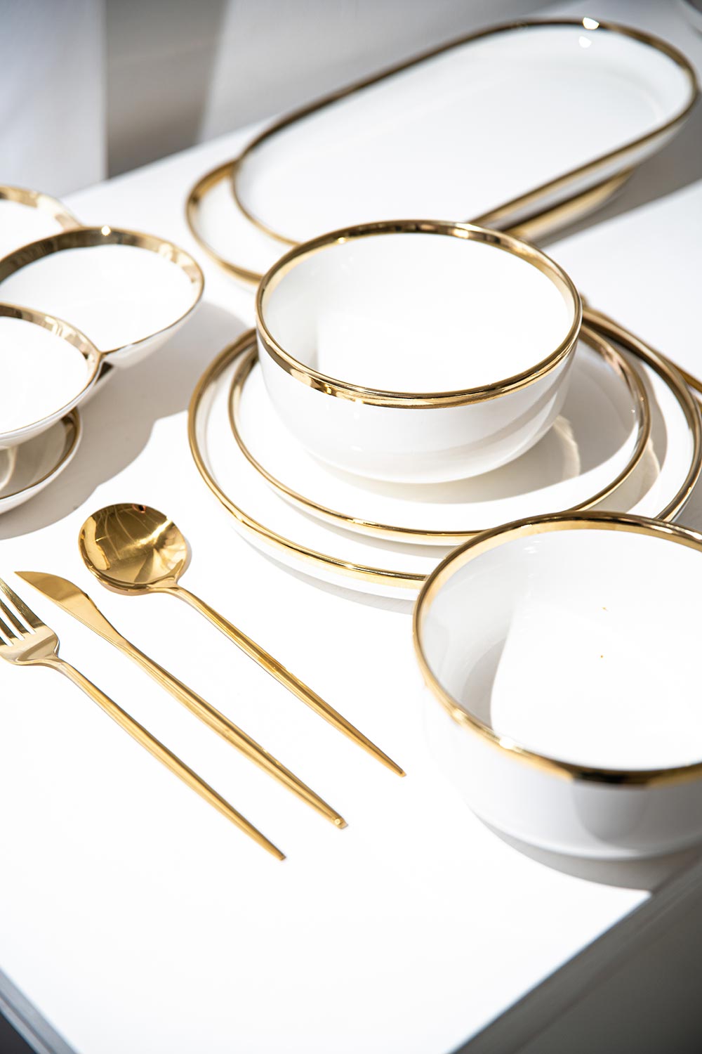 Dinner Set * White + Gold Rim + Cutlery *** This GORGEOUS set includes: